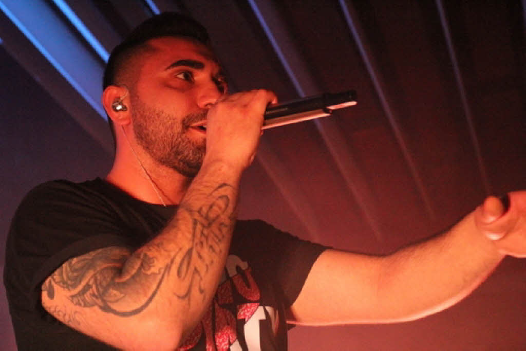 Im Haus der Jugend riecht es nach Männerdeo, etwa 700 Kerle haben sich in den Saal gedrängt. Fast alle haben sich NY-Caps auf den Kopf gesetzt und Fan-Shirts übergezogen, auf denen „Mo-Dirty-Shit“ steht. Zwischen den Jungs wippen ein paar wenige Mädchen. Auch sie nippen am Bier, tragen Caps. Nur haben es die weiblichen Fans geschafft, sich weiter nach vorne zu drängeln. MoTrip verteilt Highfives in der ersten Reihe – die Mädels rasten aus, schreien lauter als der Rapper selbst.